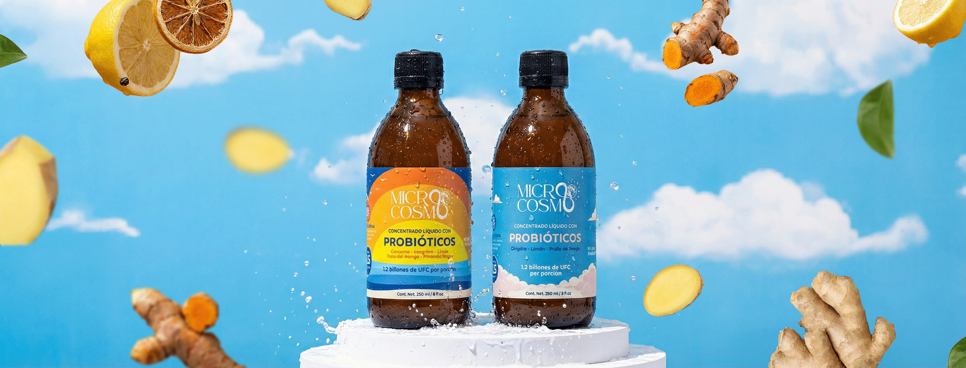 Microcosmo es un concentrado líquido de probióticos vivos. A diferencia de una cápsula, contiene un ecosistema completo de microorganismos benéficos (bacterias, levaduras y microbios lácticos) alimentados con prebióticos naturales. Están vivos, activos y listos para apoyar tu digestión desde la primera toma.
